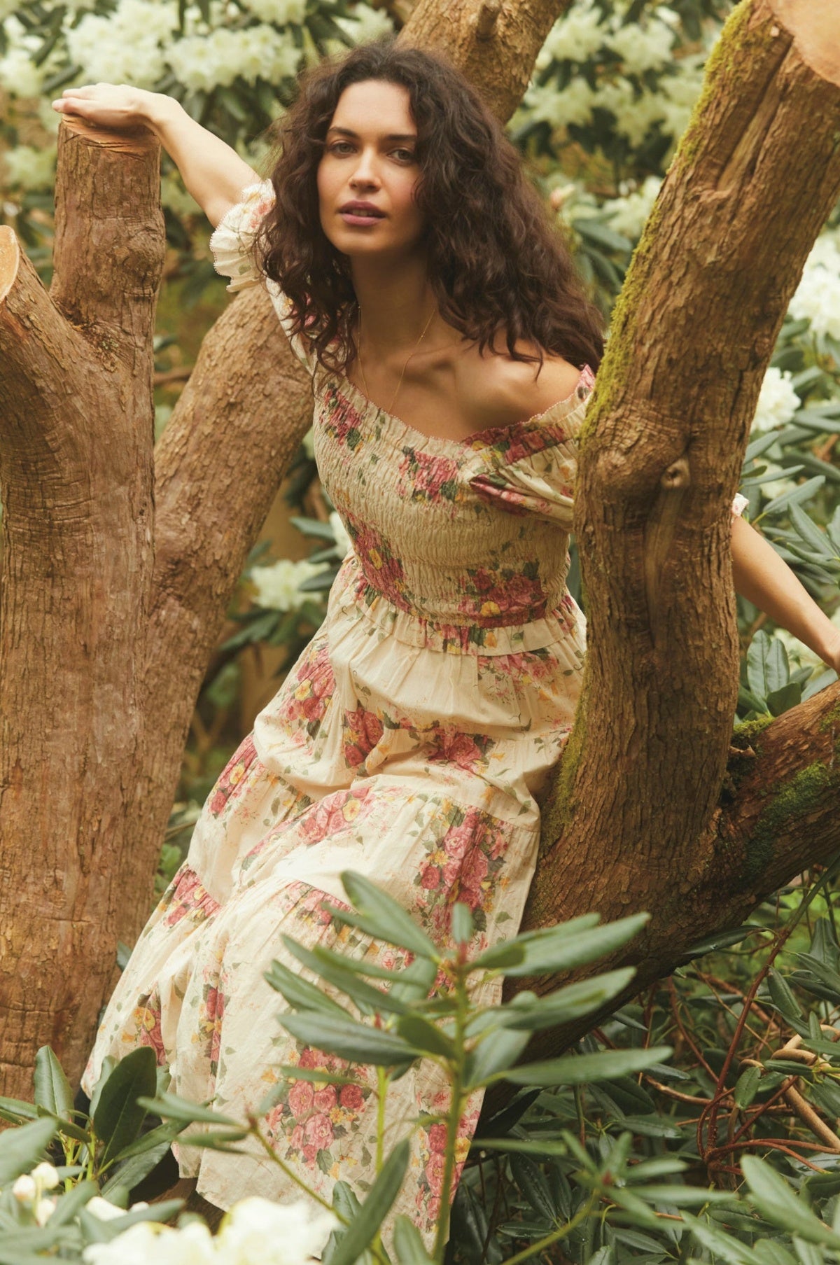 Inspired by the English countryside, the Daisy dress from St. Clair is patterned in an oversized blousy floral print that has a vintage effect. Crafted from a soft cotton, it features a square neckline edged with ruffles and is framed by puffed sleeves. A shirred bodice with an invisible back zip gives way to an ankle-grazing four tier skirt that has wonderful amounts of movement. Pair with Mary Jane's for an effortless summer look.