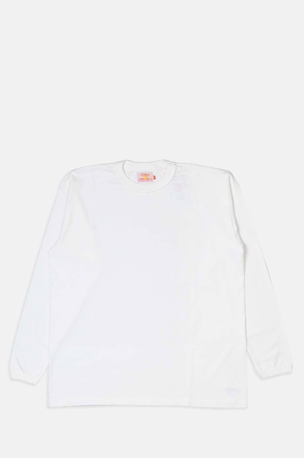 The style is produced on an antique loopwheel knitting machine in Japan (one of 2 left in the world!) and this allows for the tee to have no side seam, whilst the slow knitting process produces no stress on the yarn so it will almost never go out of shape.
