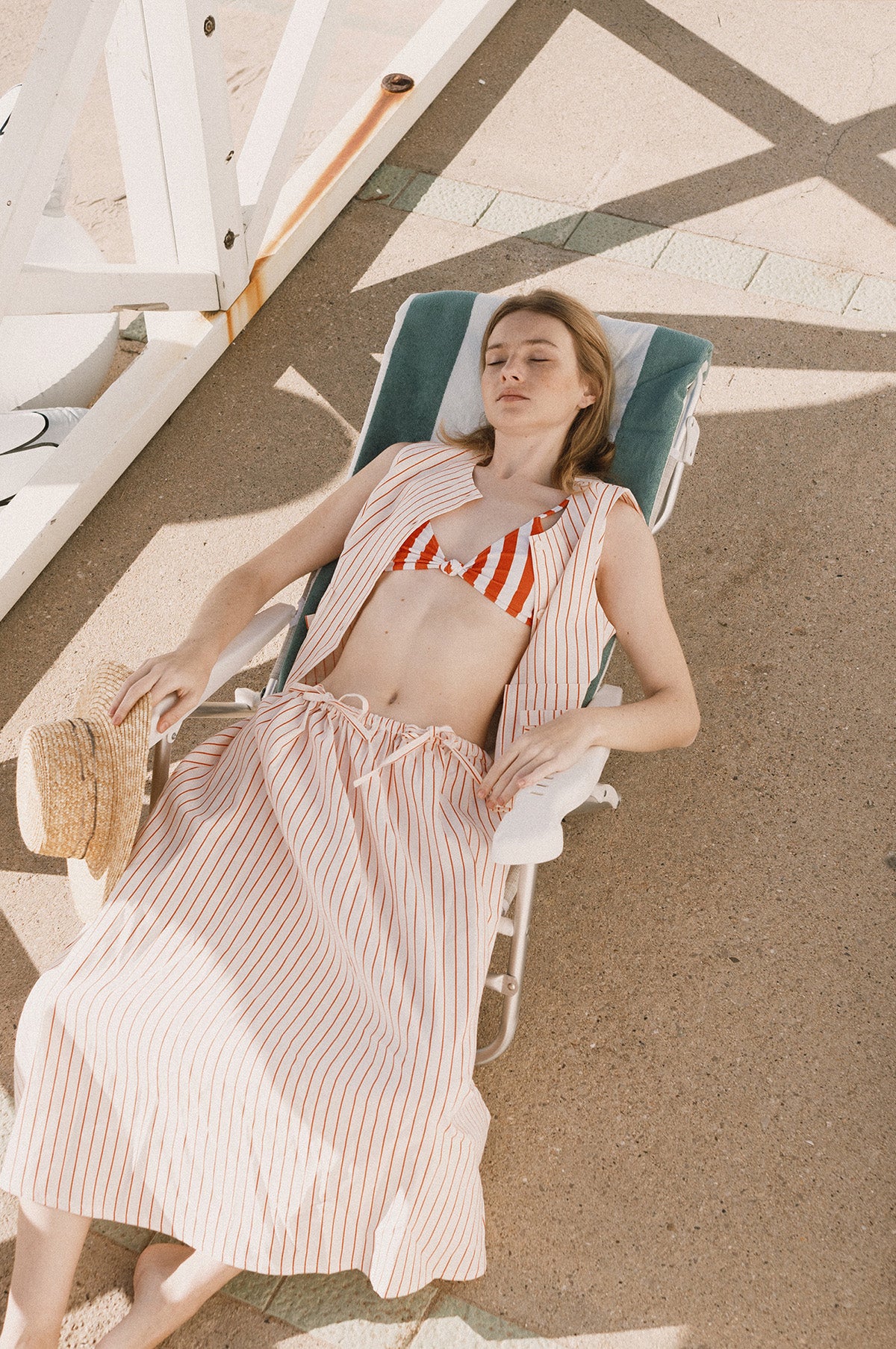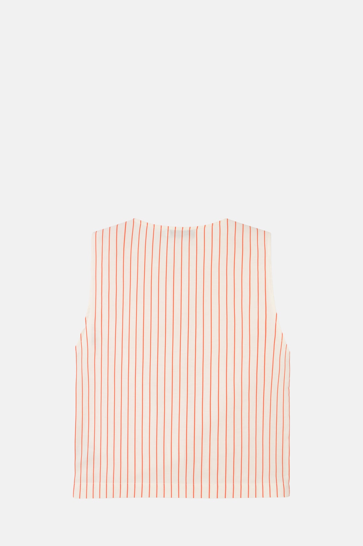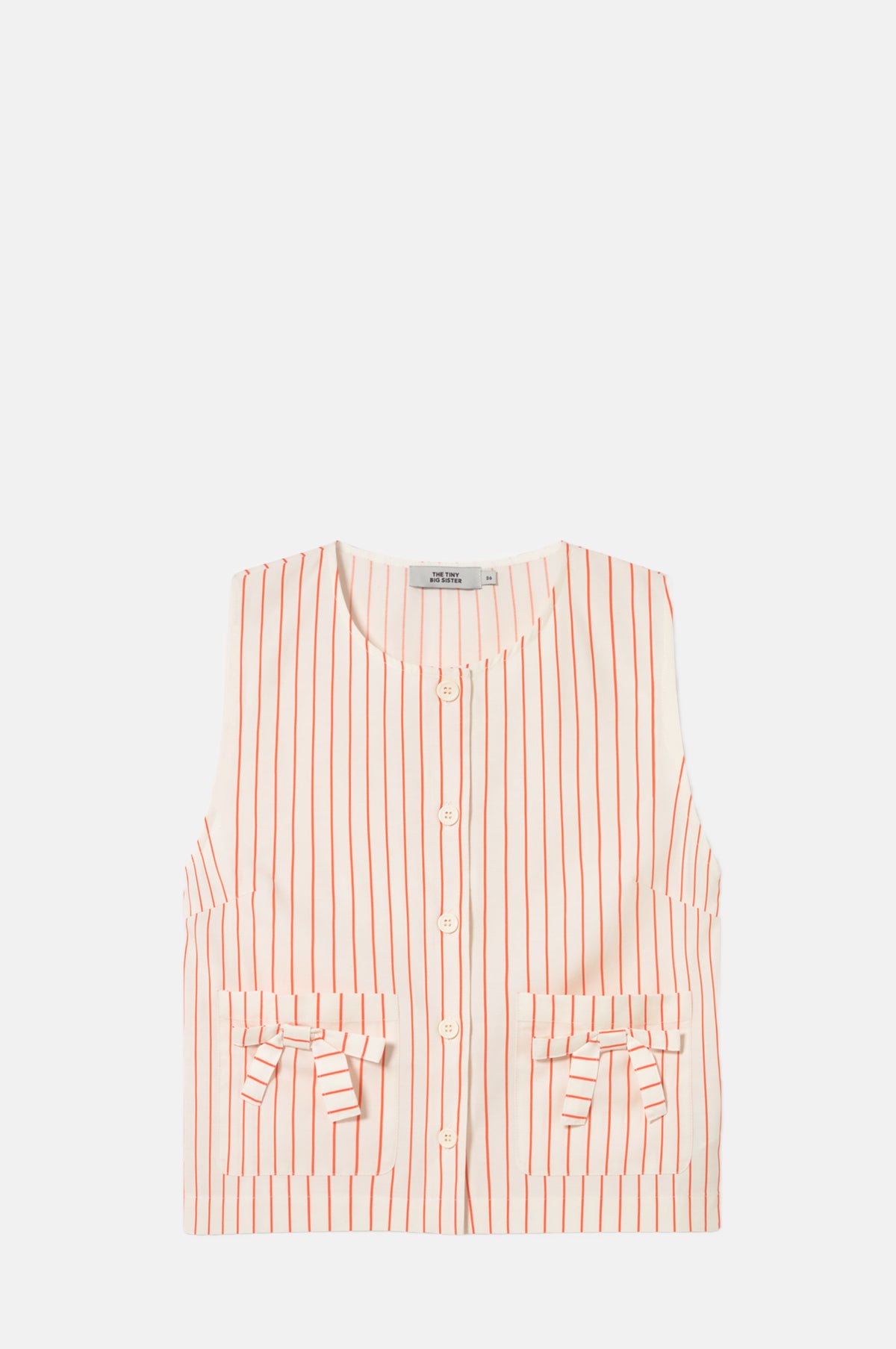 Sweet and summery, this sleeveless top is made from a lightweight cotton and linen blend that has a fluid drape. Patterned in a thin orange stripe, it features two patch pockets on the front which are adorned with bows. Cut for a relaxed fit with a slight crop, this vest is finished with a line of button fastenings. Pair with the matching skirt for a perfectly coordinated summer look.