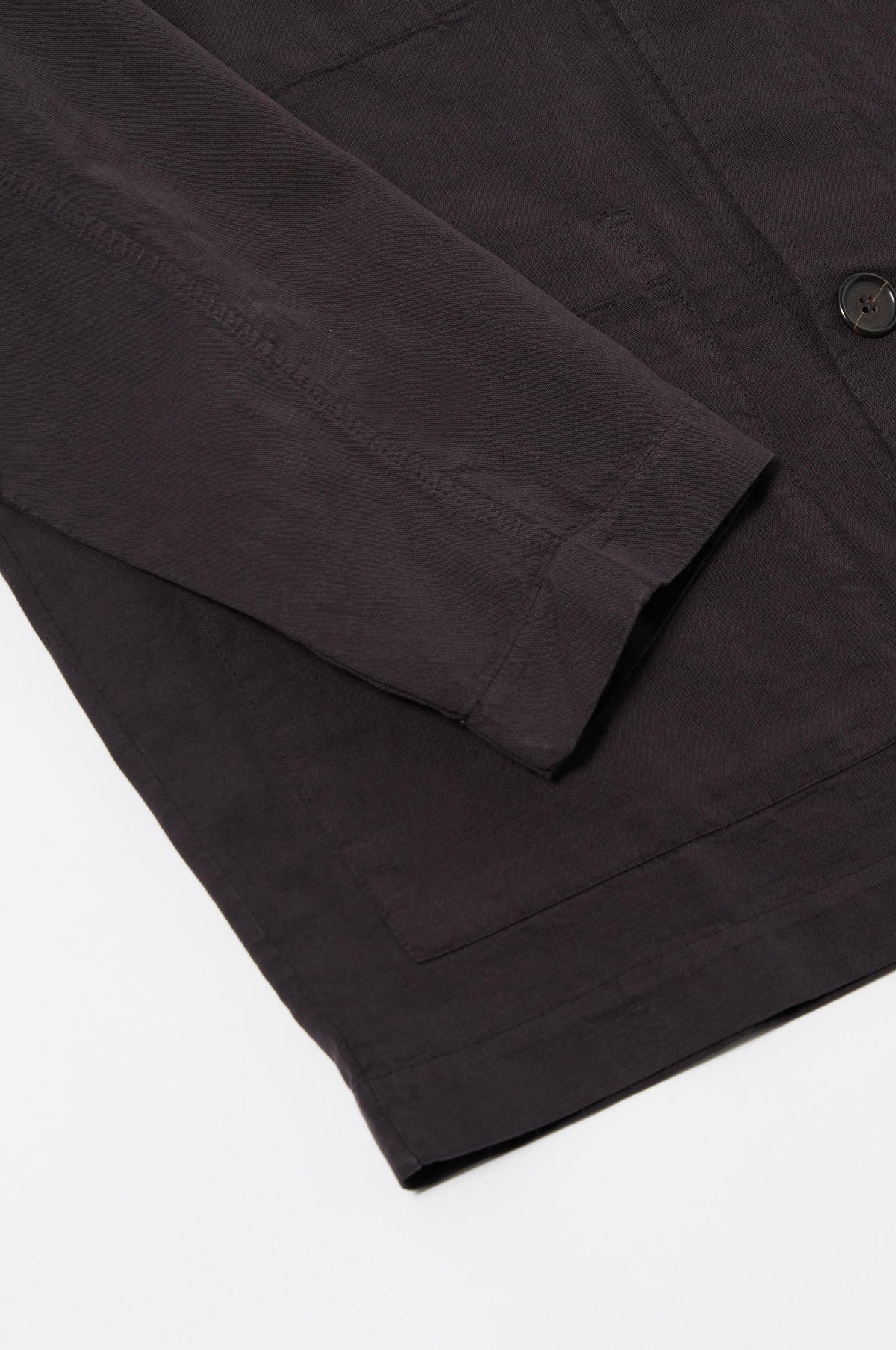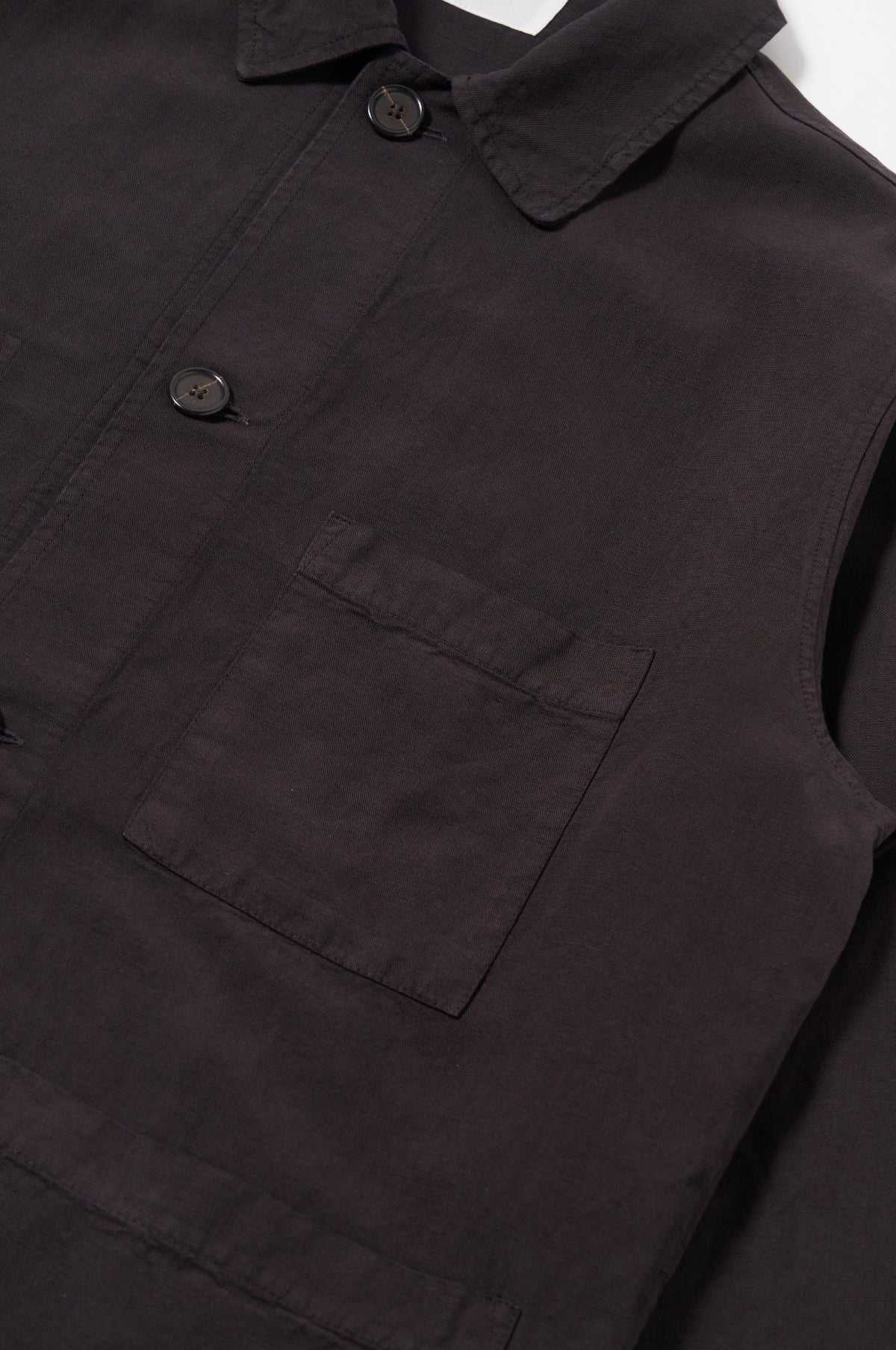The Coverall Jacket in Licorice from Universal Works is a classic work jacket silhouette, coming in a lightweight linen blend fabric which is unlined making it ideal for spring. Pair with a simple pair of jeans and a tee for a laidback outfit.
