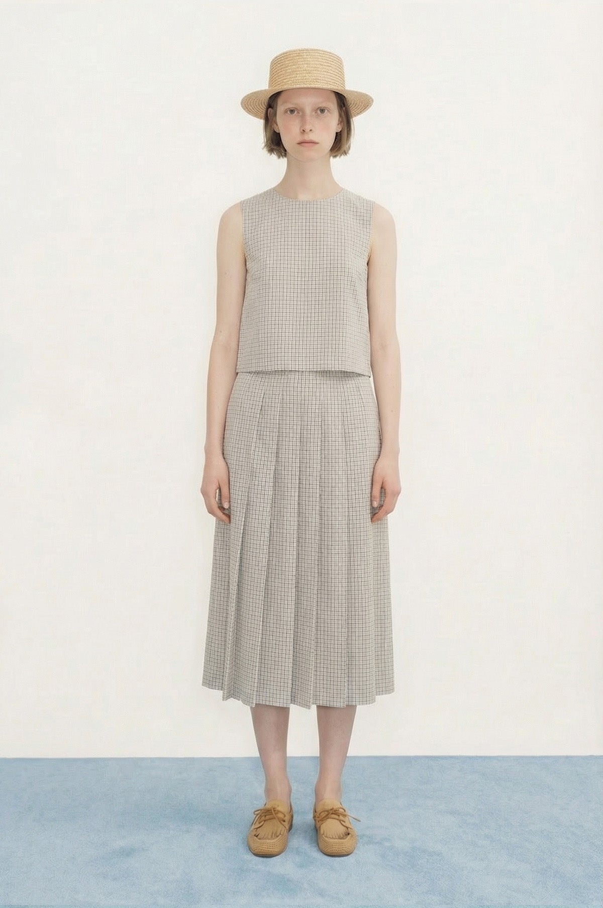 - Sleeveless checked blouse
