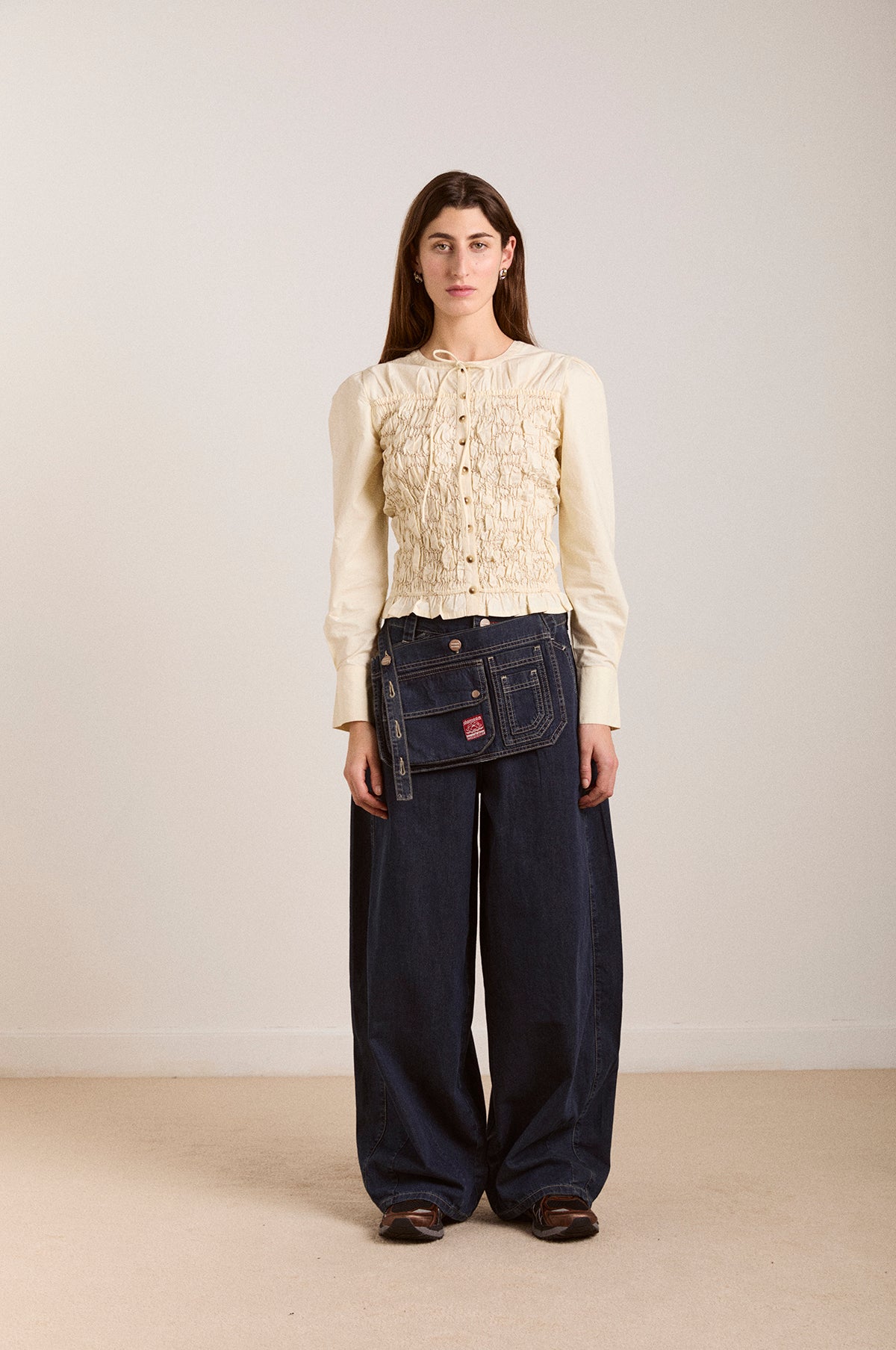 We love the casual elegance of the Elliana Cardi. Crafted from a crisp cotton in a rich cream shade, this blouse features a smocked bodice which creates a flattering, fitted silhouette to suit all shapes. The soft crew neck, delicate neck tie and button-down placket add refined structure to the blouse and compliments the smocked bodice. Dress it up with a tailored pair of trousers or keep things casual with your favourite denim for an elevated everyday look.