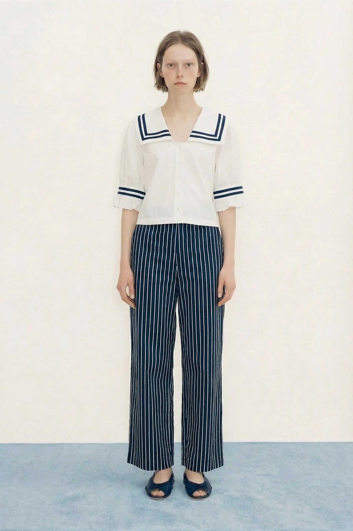 - Sailor-style collar
