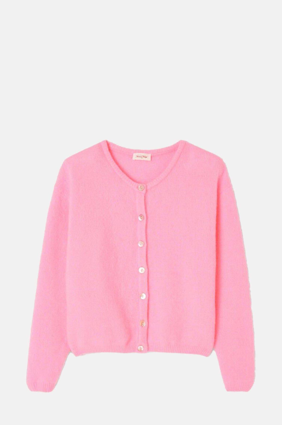This classic cardigan has a neat, round neck and long sleeves. Mother of pearl buttons run down the front and the edges have a neat ribbed finish. The fabric is soft, spongy and lightweight with a medium thickness so is great as an all-year-round piece. And the soft pink colour will be sure to complement every outfit!