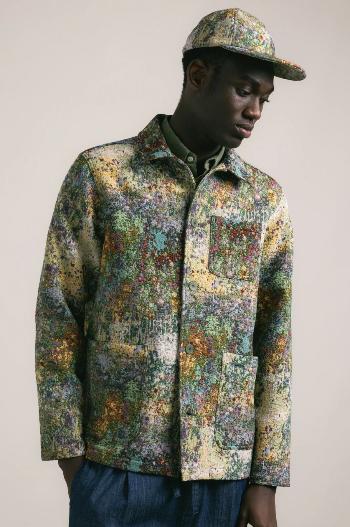 The Ormiston is modelled on a traditional carpenter's jacket, with three patch pockets, evoking a chore coat, with an additional tool pockets to the sides. For SS26, this workwear silhouette is made from a midweight jacquard fabric and features and allover multicoloured design. The Ormiston is a slightly relaxed fit, designed to layer nicely over a tee and shirt.