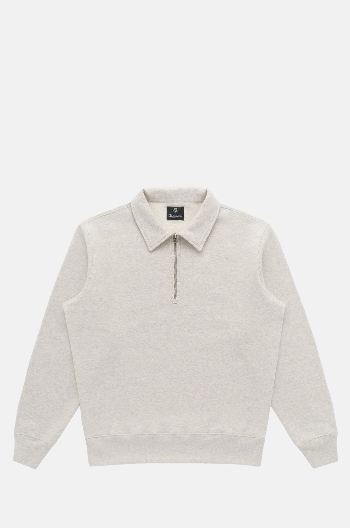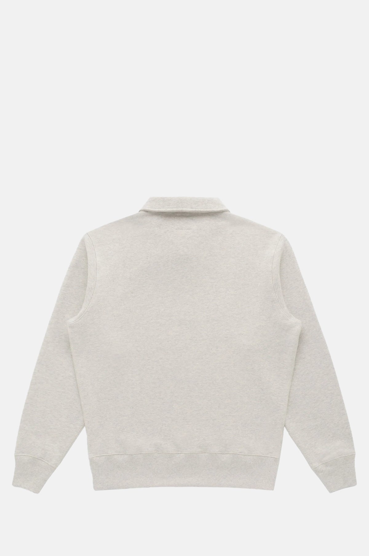 The Stadium Loft Knit Quarter Zip in Oat Grey embodies classic sportswear style. This relaxed-fitting, popover sweatshirt is crafted from ultra-soft fleece using dual ring-spun, combed cotton yarns, and features a ribbed hem and cuffs for added comfort.