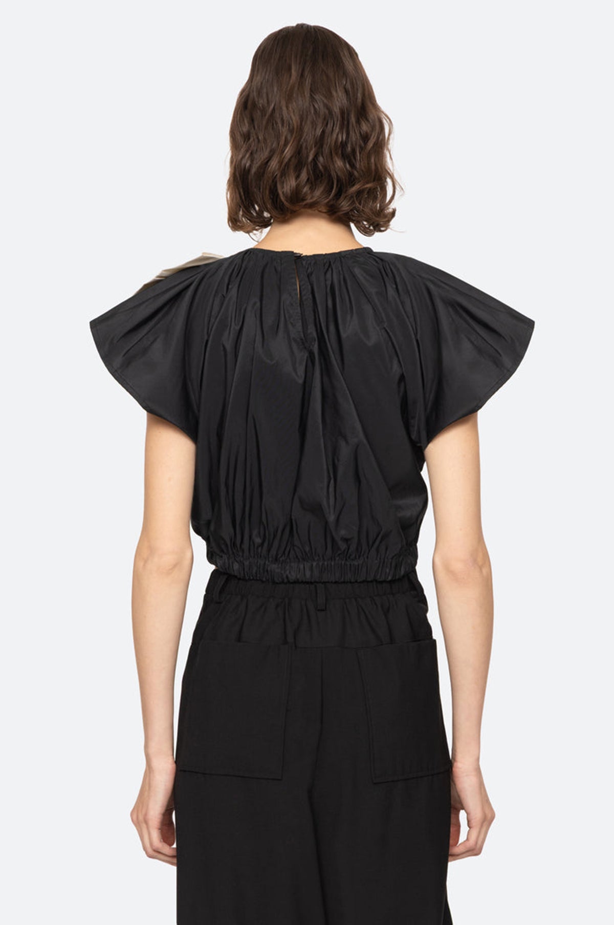 Laurie Solid Flutter Slv Top Black