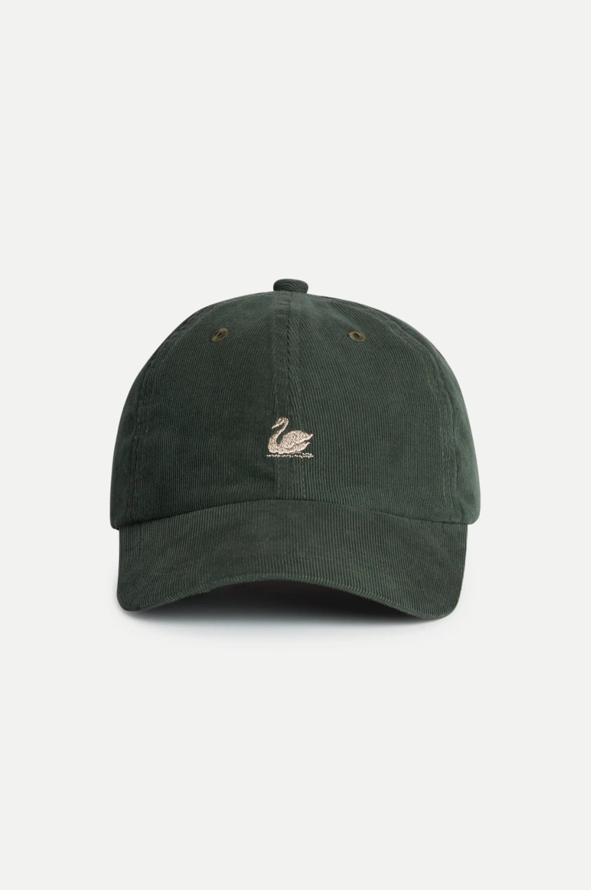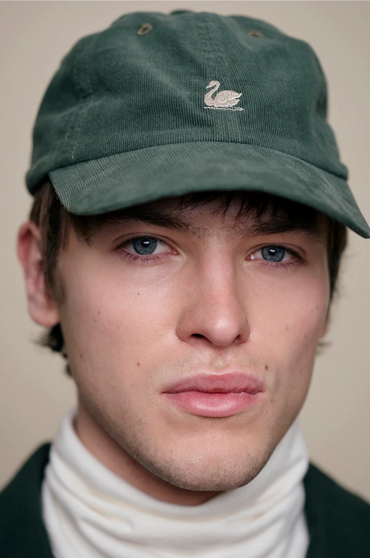 The Cotton Corduroy Cap in Forest is a low-profile cap with a signature logo embroidered on the front in contrast colours. This six-panel cap is made with 100% organic cotton corduroy with an adjustable strap and metal closure that guarantees the perfect fit. The cap features the signature swan logo on the front.
