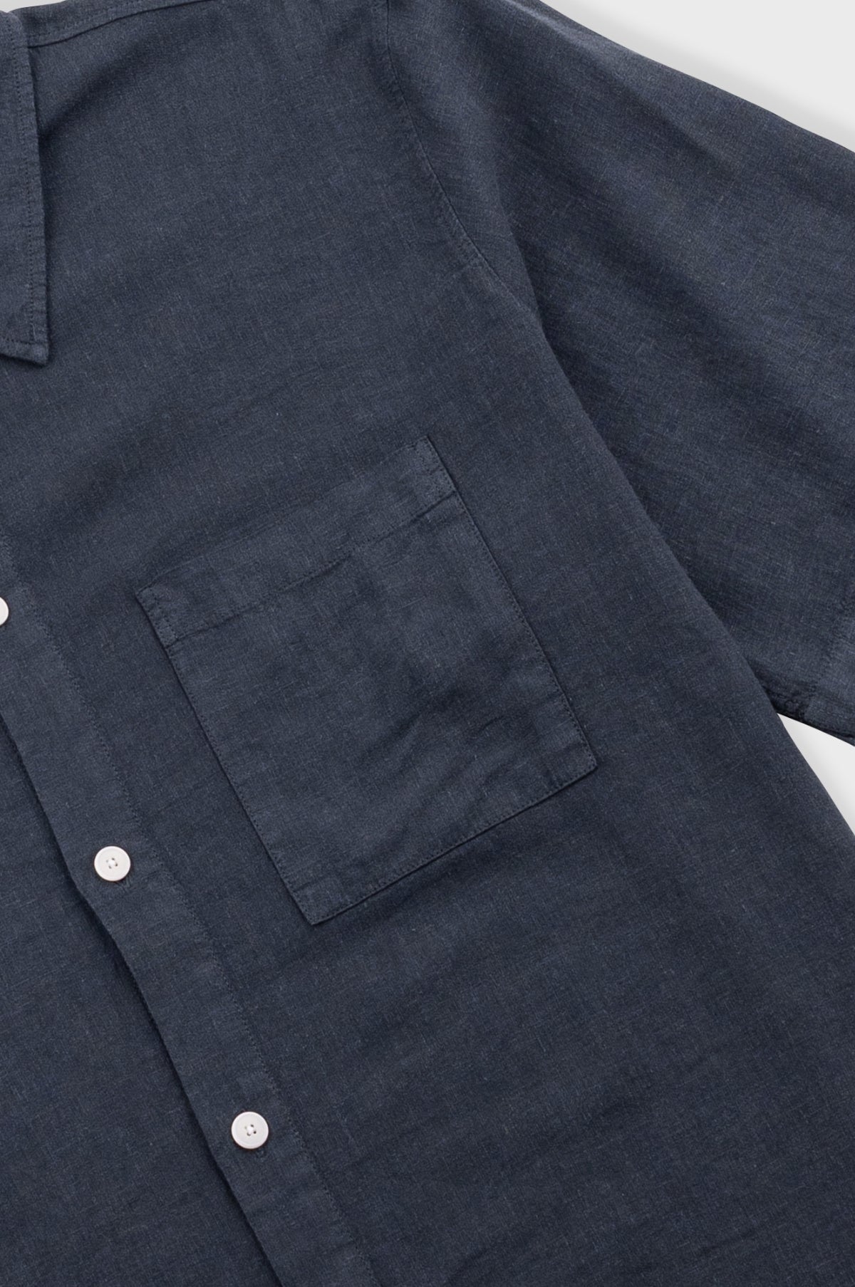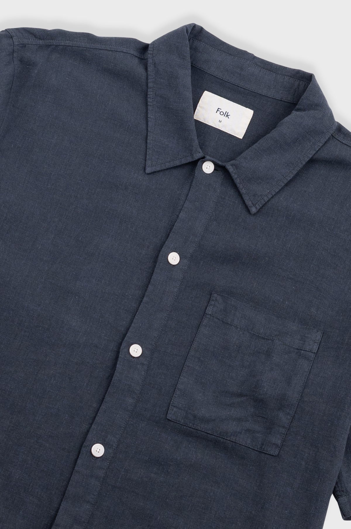 Folk offers style without drama using simple patterns with a focus on quality and textures to create approachable collections enriched by subtle details. The Gabe Shirt is a simple lightweight cotton linen summer shirt finished with a single chest pocket and corozo nut buttons. This is the Soft Black colourway.