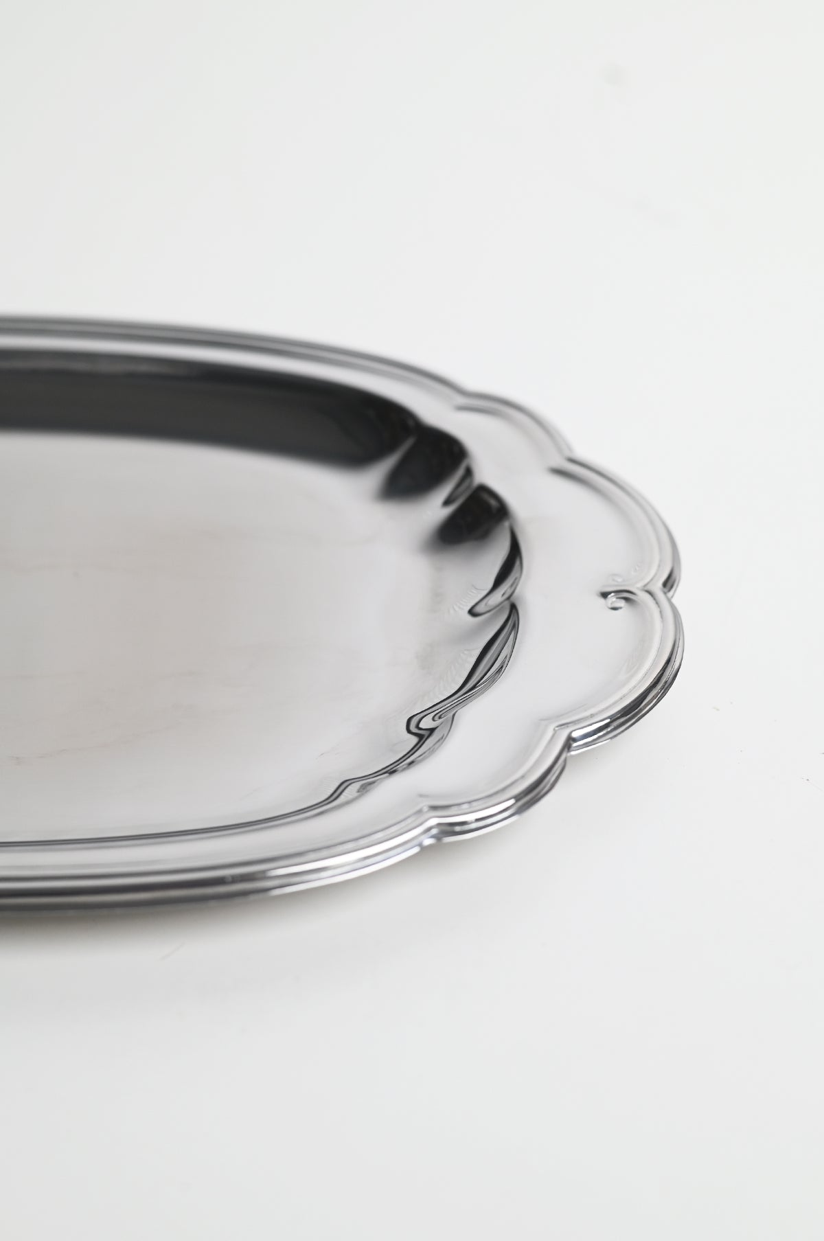 - Small stainless steel scalloped serving tray